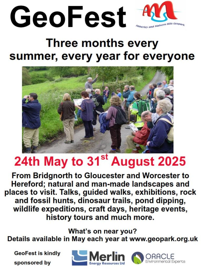 If you are interested in finding out more about the Abberley and Malvern Hills geopark, visit their website, and read our blog ‘Introducing the Geopark’ from June 2024 here. To see what GeoFest events are running this year, click here.